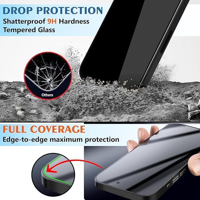 Privacy Tempered Glass for iPhone 15 Plus / 16 Plus – Pack of 2 | Anti-Spy Screen Protectors | Easy Installation Kit