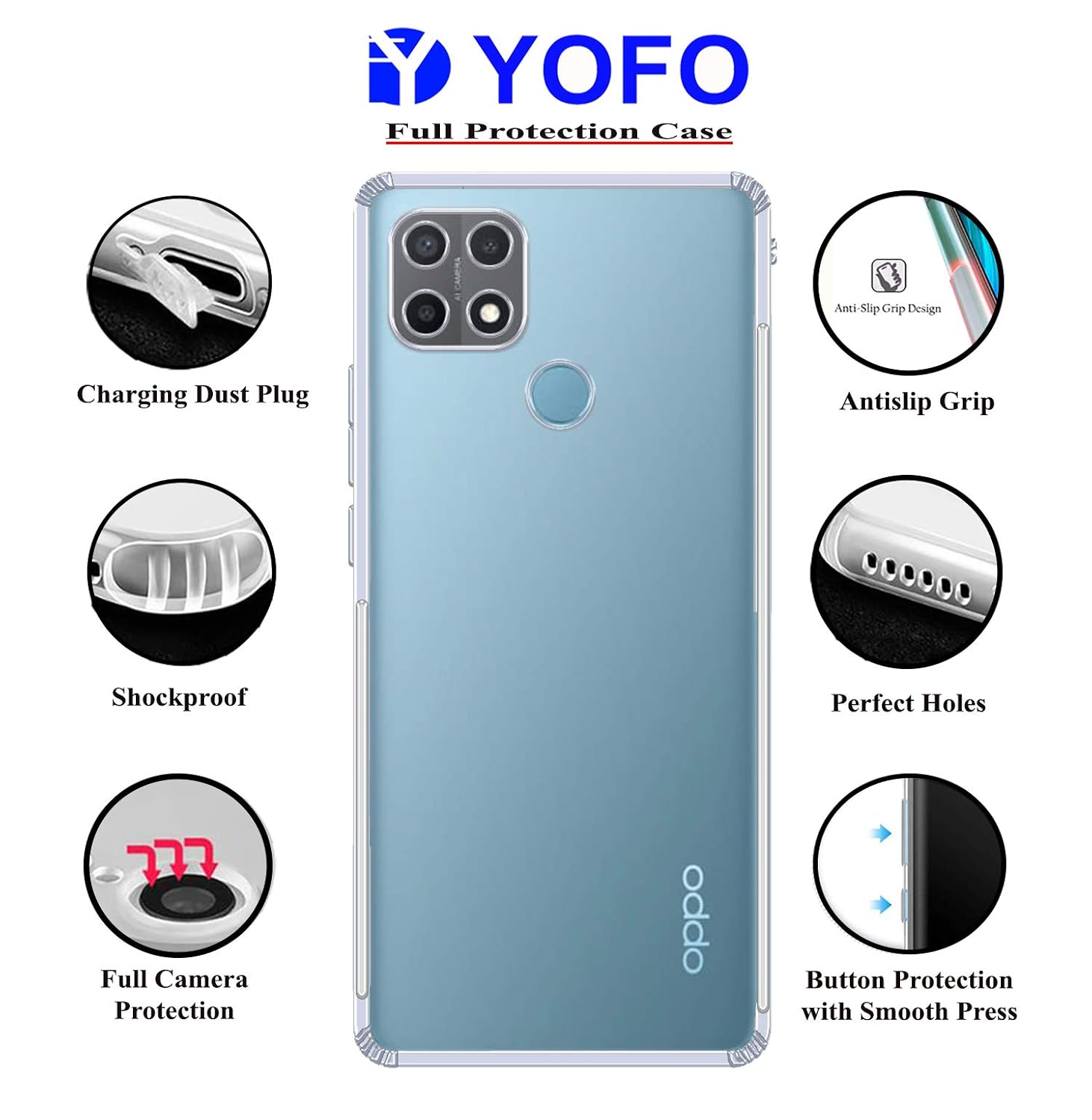 YOFO Silicon Transparent Back Cover for Oppo A15s - Camera Protection with Anti Dust Plug