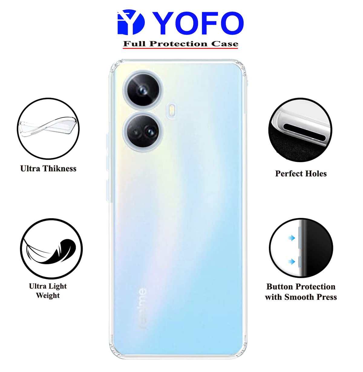 YOFO Back Cover for Realme 10 Pro Plus (5G) (Silicone|Transparent|Camera Protection)