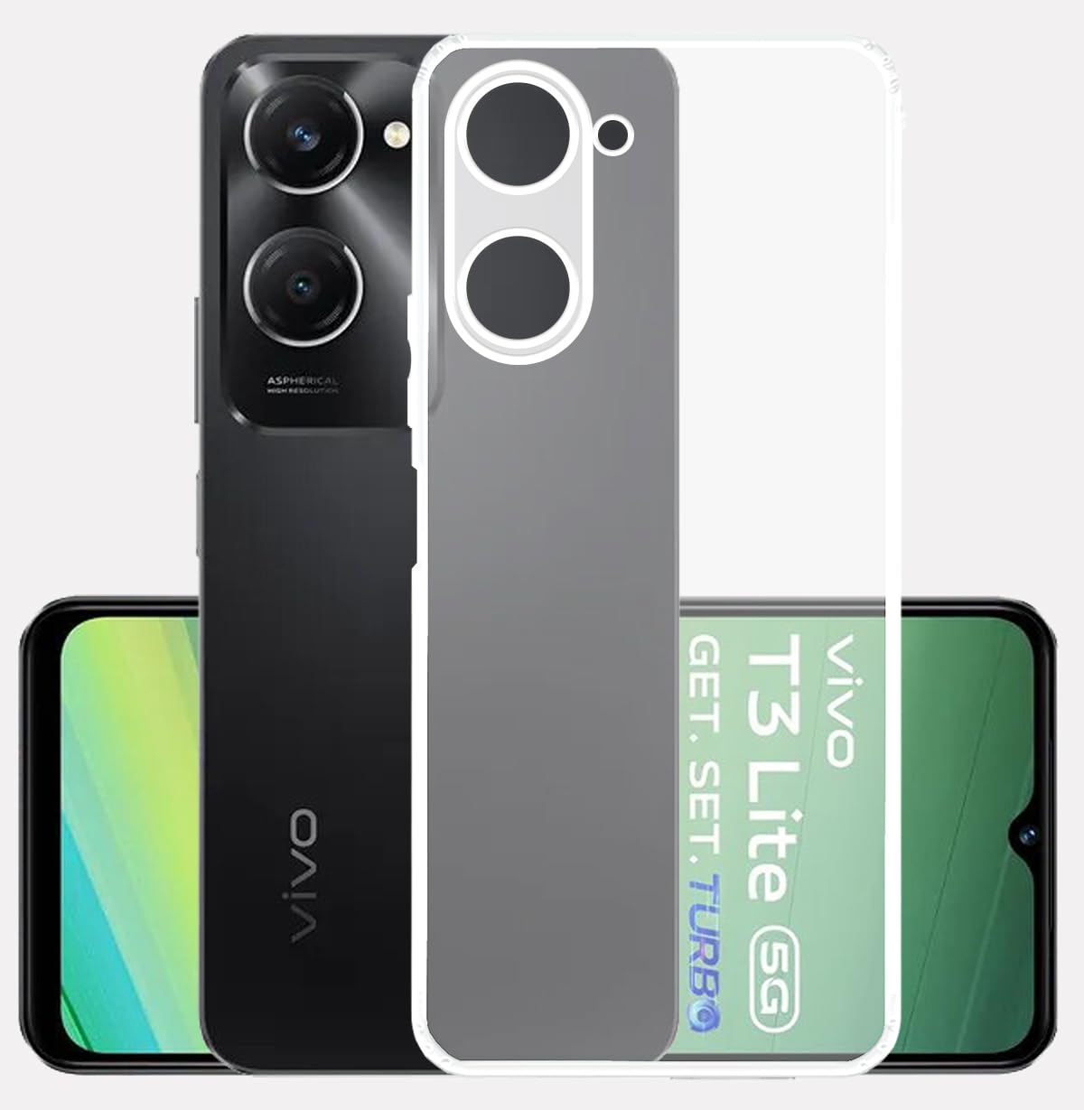 YOFO Back Cover for Vivo T3 Lite (5G) (Flexible|Silicone|Transparent|Full Camera Protection|Dust Plug)