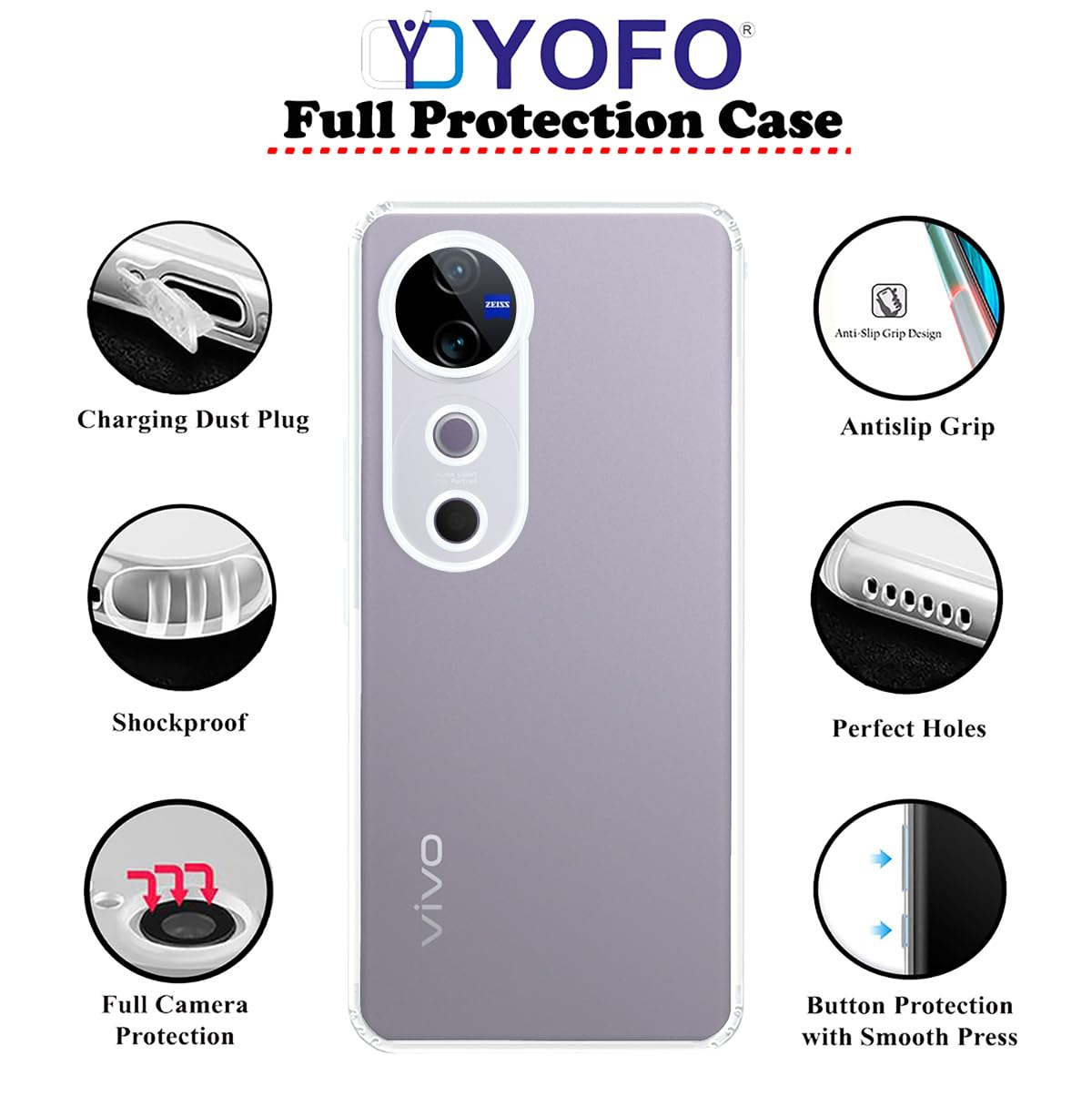 YOFO Back Cover for Vivo V40 / V40 Pro/Vivo T3 Ultra (5G) (Flexible|Silicone|Transparent|Full Camera Protection|Dust Plug)