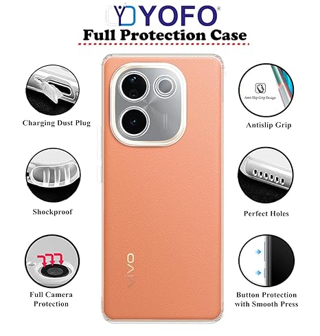 YOFO Silicon Back Cover Case for Vivo T3 Pro (5G) / iQOO Z9s Pro (5G) (Transparent) Camera Protection with Dust Plug
