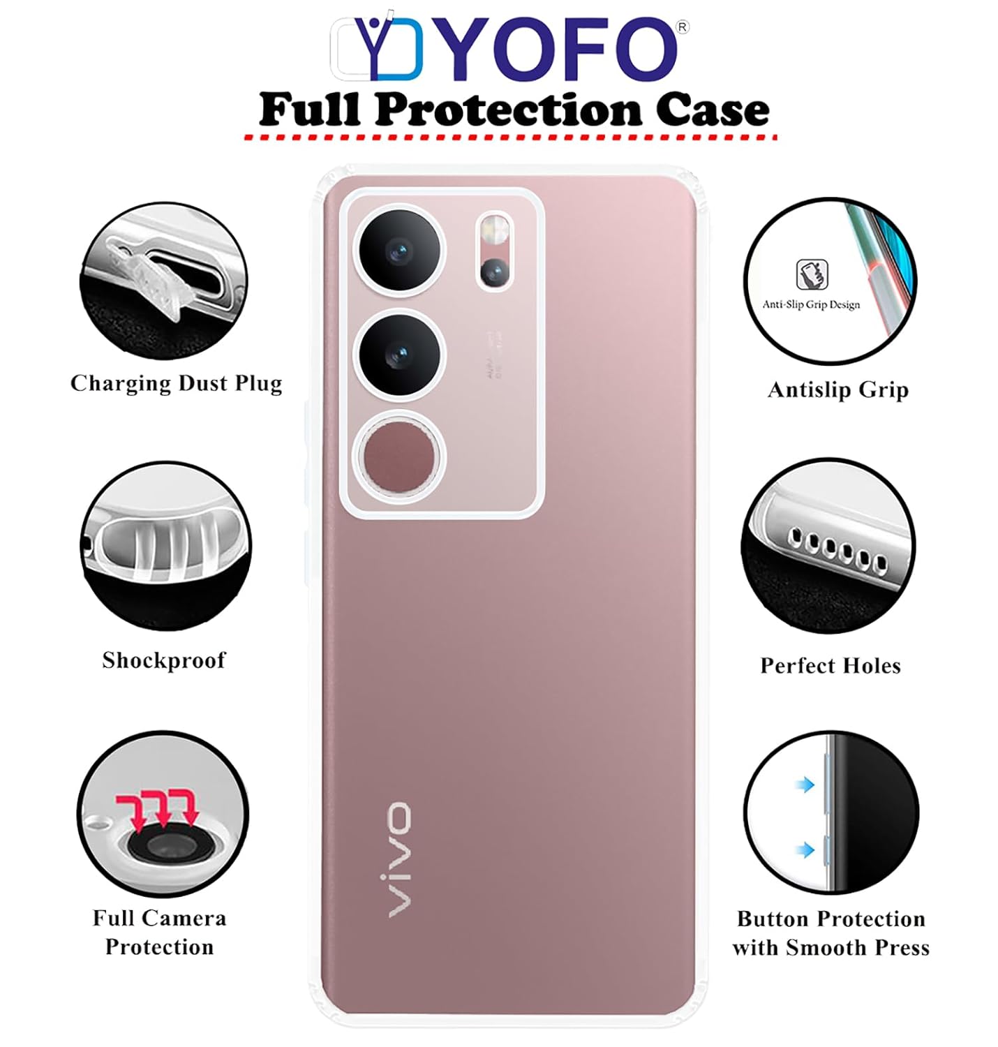 YOFO Back Cover for Vivo V29 / Vivo S17 / S17 Pro (5G)(Flexible|Silicone|Transparent|Full Camera Protection|Dust Plug)