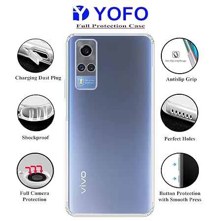 YOFO Back Cover for Vivo Y51(2020) / Y31(2021) / Y51A / Y53s (4G) (Flexible|Silicone|Transparent|Camera Protection|DustPlug)