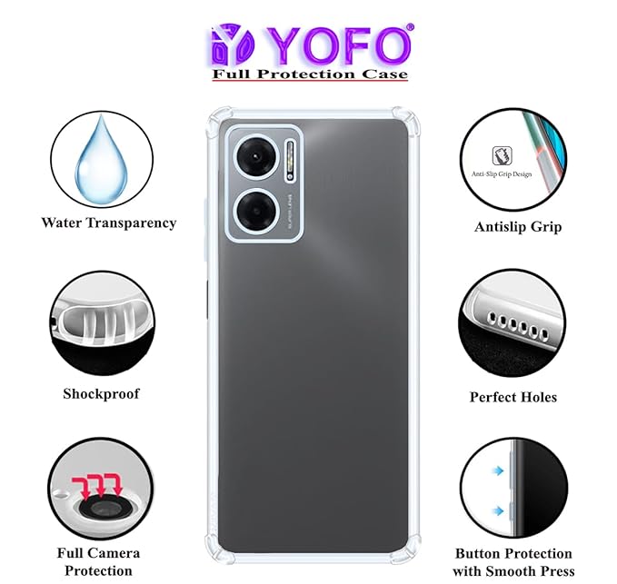 YOFO Back Cover for Mi Redmi Note 11E (Flexible|Shockproof|Silicone|Transparent|Camera Protection)