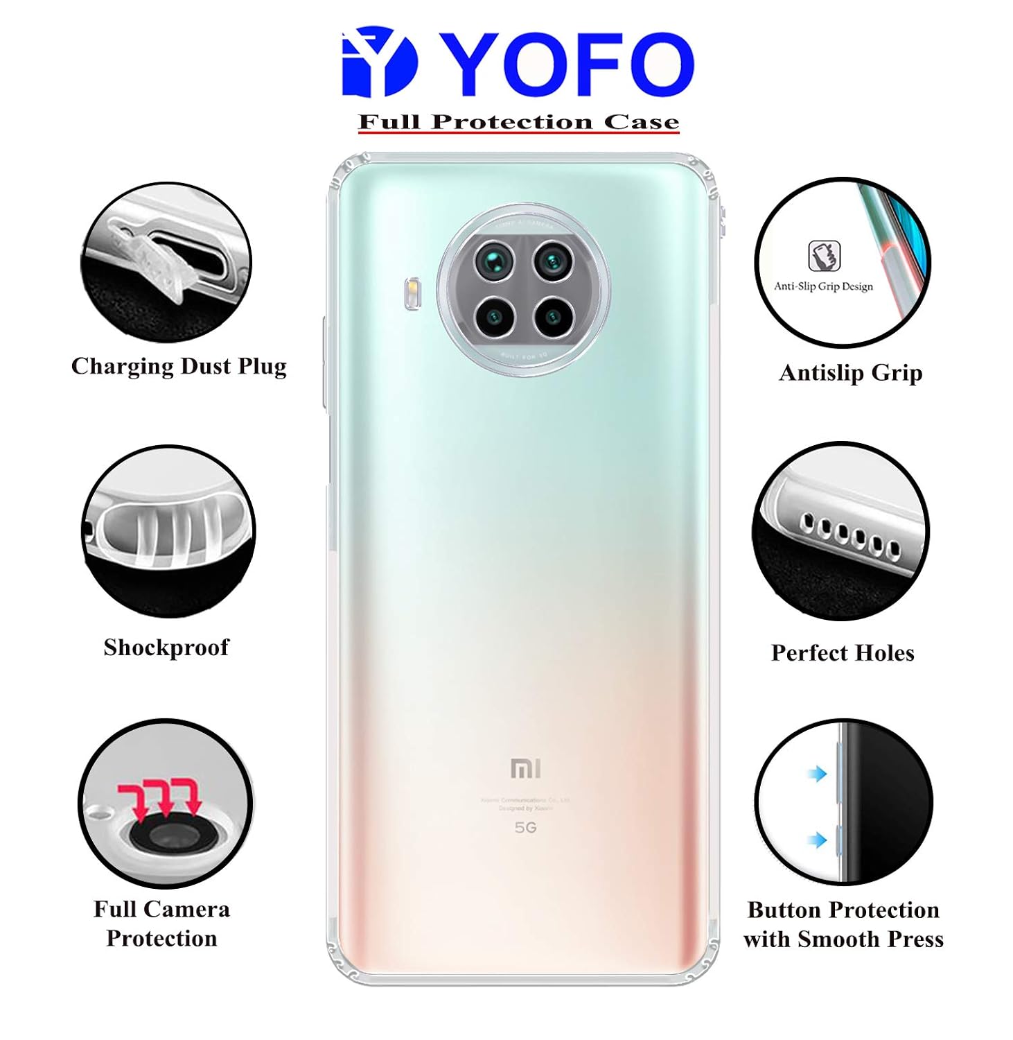 YOFO Back Cover for Xiaomi Mi 10i (Flexible|Silicone|Transparent|Camera Protection|DustPlug)
