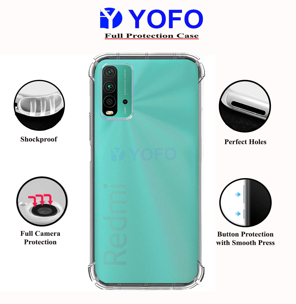 - Transparent 4 Corner Cution Technology Case For MI Redmi 9 Power Clear Protection Case