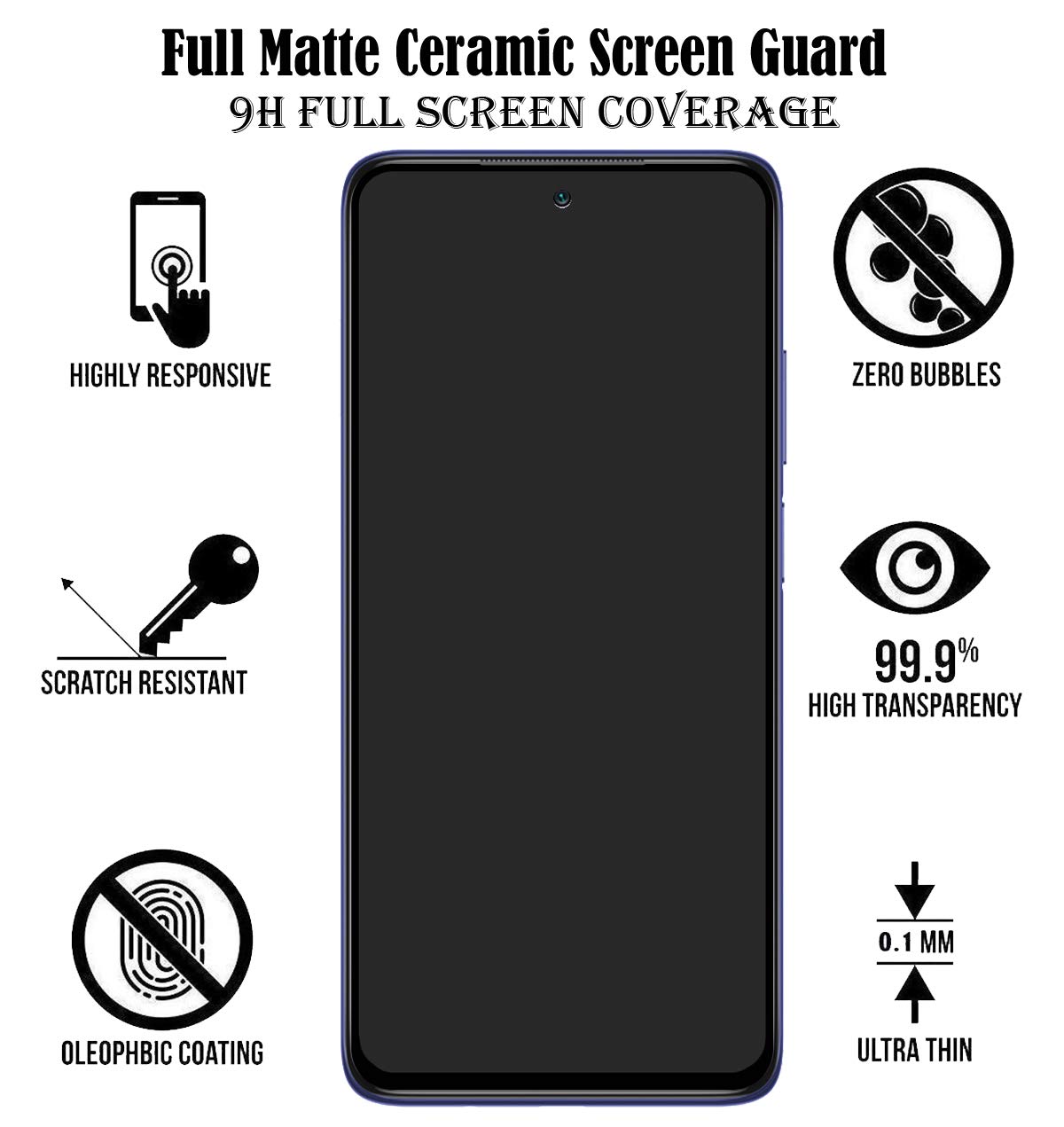 - Scratch resistant : Anti Glare Matte Finish Anti-Fingerprint nano primer coating and oleophobic coating provides excellent strength to make sure 100% scratchproof ceramic glass.