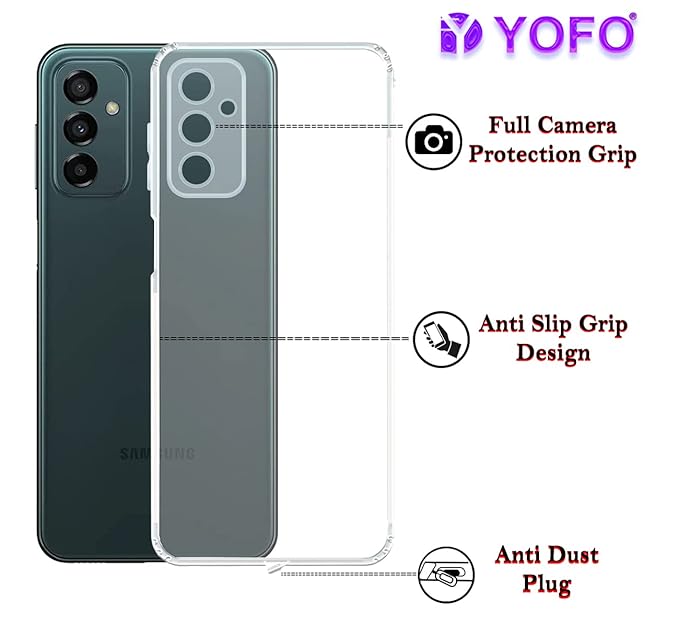 YOFO Back Cover for Samsung Galaxy F23 (5G) Flexible|Silicone|Transparent|Dust Plug|Camera Protection…