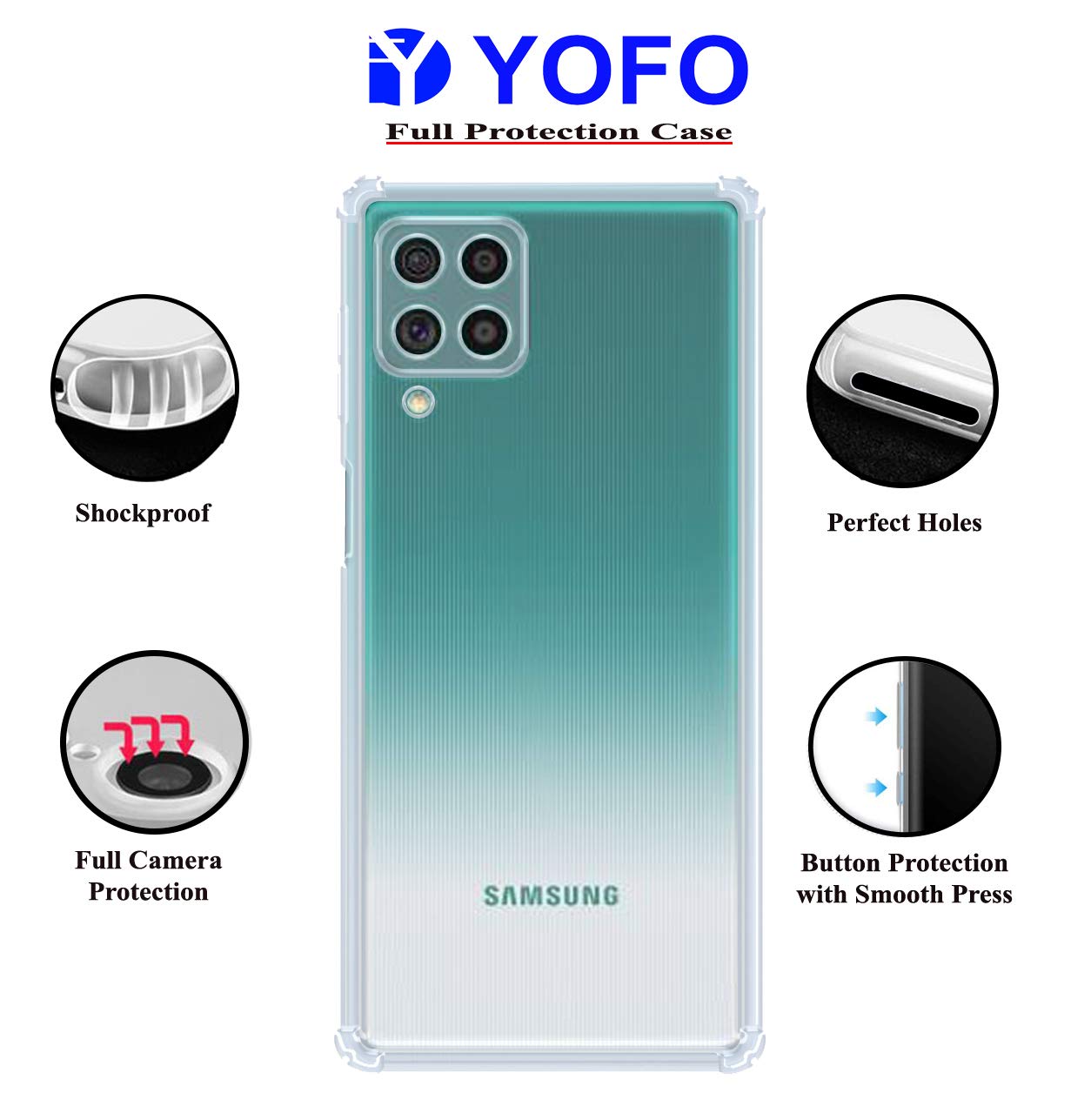 - Transparent 4 Corner Cution Technology Case For Samsung F62 Clear Protection Case With Ultimate Protection