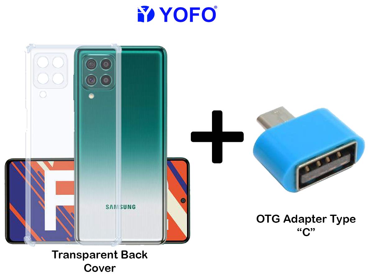 YOFO Silicon Transparent Back Cover for Samsung F62 Shockproof Bumper Corner with Free OTG Adapter