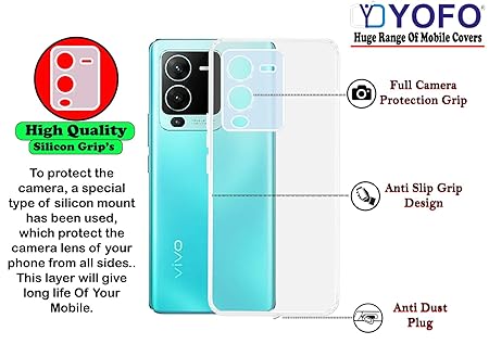 YOFO Back Cover for Vivo V25 Pro (5G) / S15 Pro (5G) (SlimFlexible|Silicone|Transparent|Camera Protection|DustPlug)