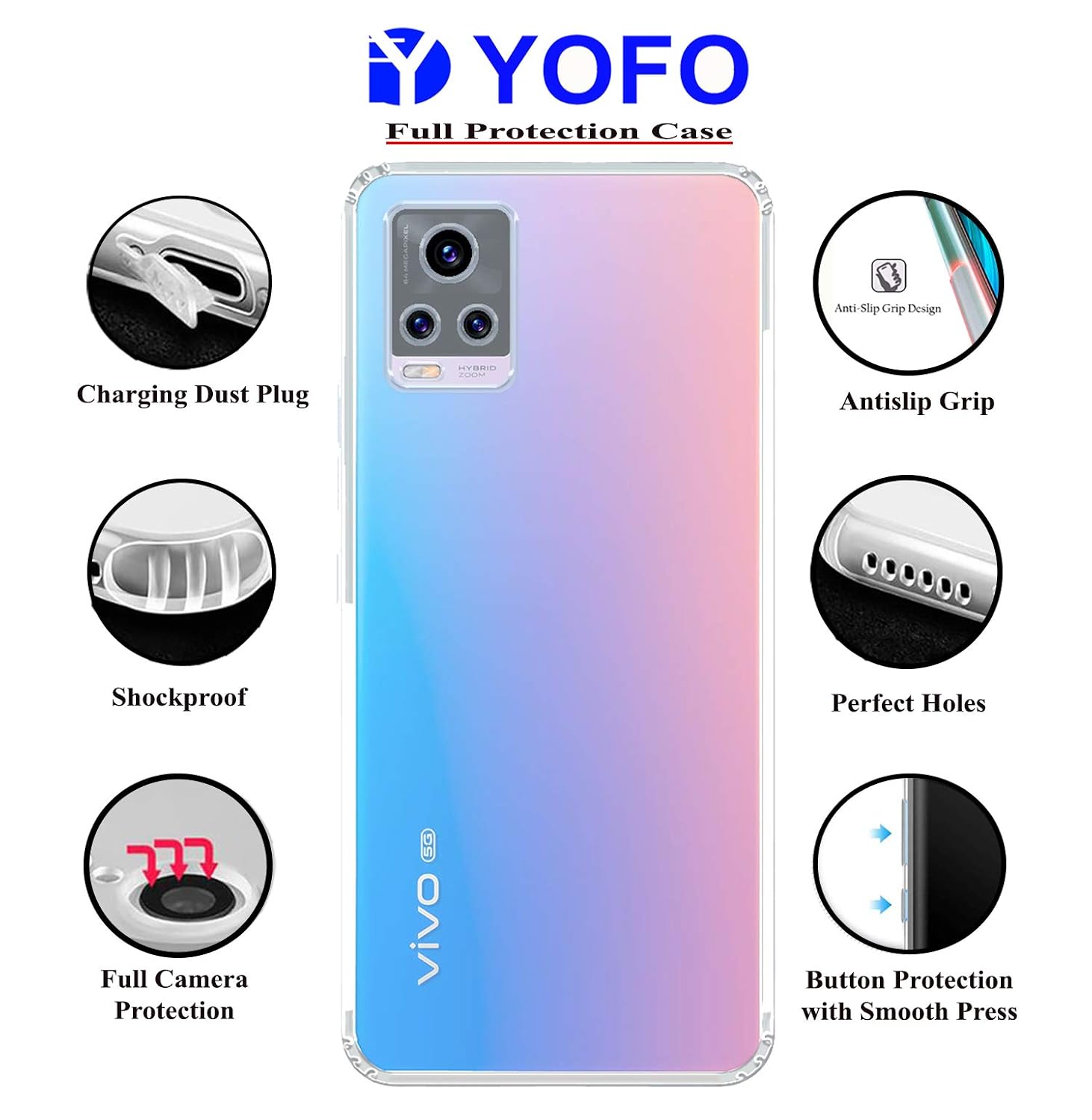 YOFO Silicon Transparent Back Cover for Vivo V20 Pro - Camera Protection with Anti Dust Plug